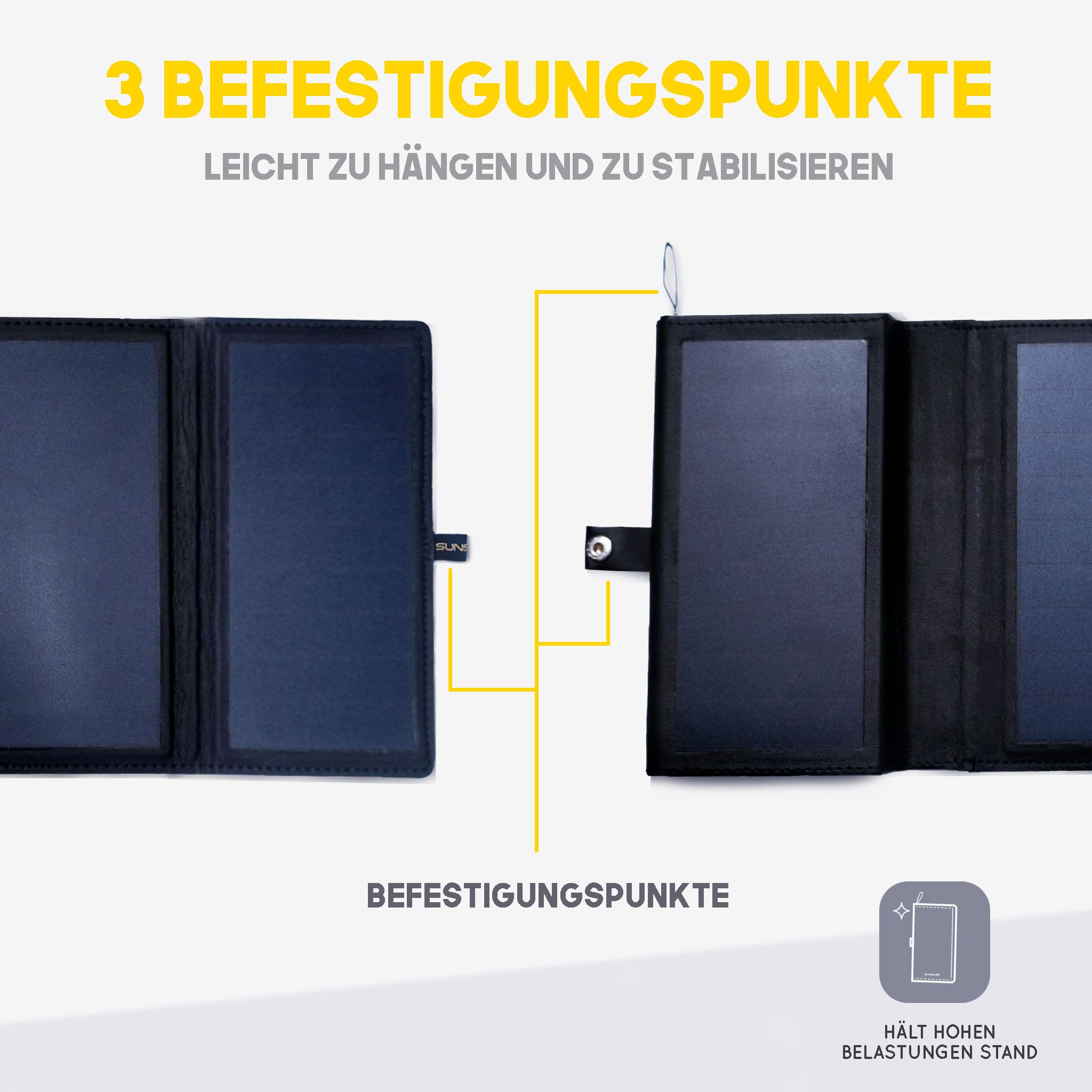 Das tragbare Solarladegerät Photon ist mit einer hocheffizienten contact mit monokristallinen Zellen ausgestattet, die einen Wirkungsgrad von bis zu 24 % erreicht, um die Leistungsabgabe des tragbaren Solarladegeräts zu maximieren und Größe und Gewicht zu minimieren. Die Solarmodule werden aus den Materialien mit der höchsten Lichtdurchlässigkeit hergestellt, um die Stromerzeugung zu maximieren.