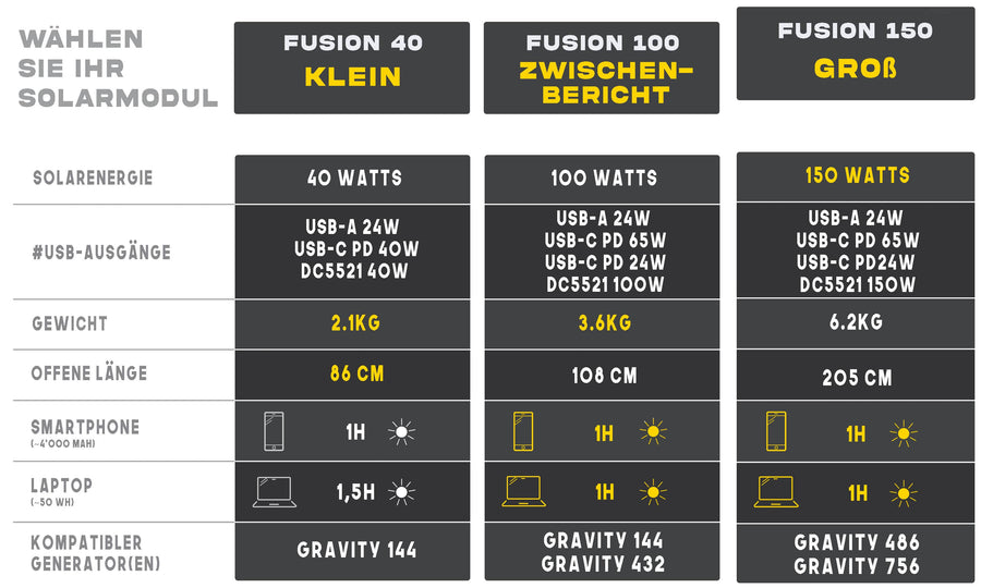 Der Fusion 150 ist mit dem Gravity 756 Kraftwerk kompatibel. Diese Kombination ermöglicht es Ihnen, die von der Sonne erzeugte Energie zu erhöhen. Wie?