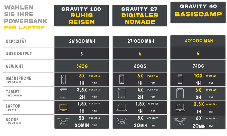 Gravity 40'000 mAh - Powerbank für Laptop