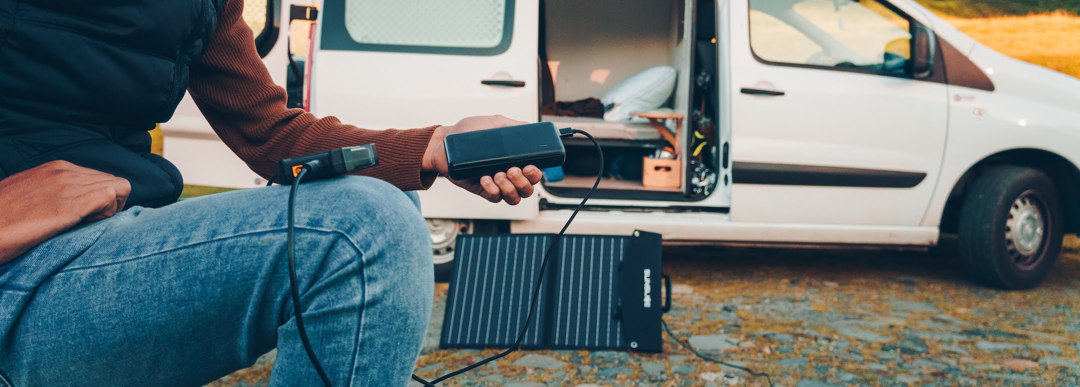 Vous pouvez maintenant connecter votre ordinateur portable, votre smartphone ou tout autre appareil au port USB-A ou USB-C de la boîte de jonction spéciale, à une distance de 5m de votre panneau solaire.