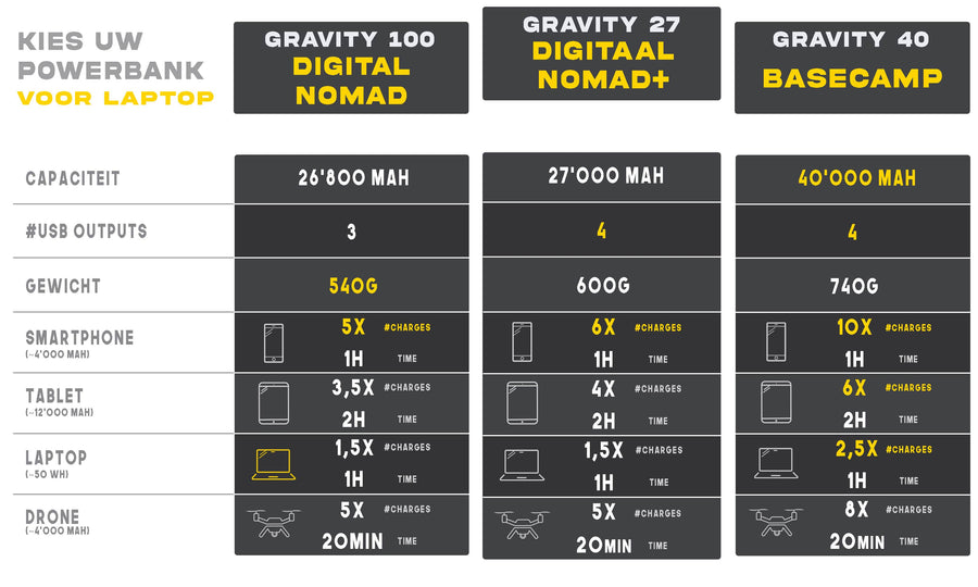 De Gravity 27 is een krachtige 27.000 mAh powerbank voor laptops.