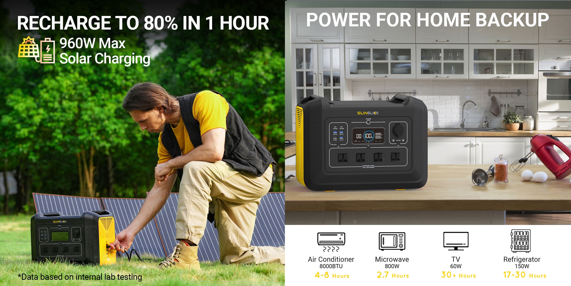 Met de 4 x 220V 2400W uitgangen en de vele verschillende USB- en auto-uitgangen kun je grote apparaten van stroom voorzien, zoals een koelkast, elektrisch gereedschap, tv, desktop pc, laptops, drones, tablets en nog veel meer.