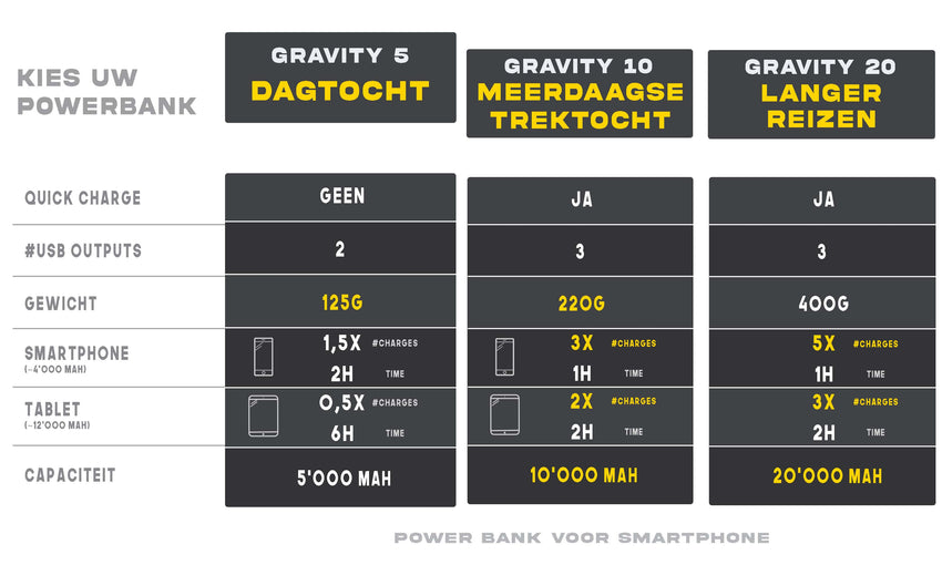 De Gravity 5 powerbank is een superkleine en licht externe batterij die ontworpen is om je apparaten snel en efficiënt op te laden. Hij is ook perfect geschikt om je overtollige zonne-energie op te slaan als je op zoek bent naar een superlichte oplossing.